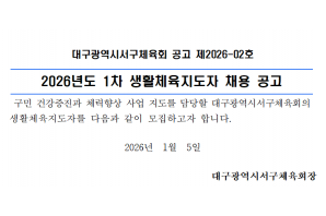 2026년 1차 생활체육지도자 채용 재공고(2026.1.19.)